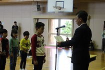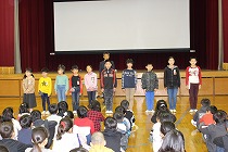 堂々とした態度、やる気に満ちた表情で、全校児童の前に立ちました。みんなから激励の拍手を送られ、身の引き締まる思いだったのではないでしょうか。
