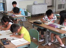教科書の文章から、「問い」と「答え」の文を確かめながら、ワークシートに書き出していました。入学してから登校した日数は50日弱ですが、落ち着いた雰囲気で学習しているその姿は、もうすっかり小学生です。