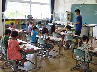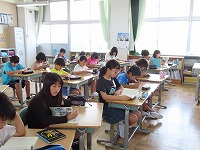熱中症が心配されたため、草取りを早めに切り上げ、エアコンのよくきいた教室で日誌の答えを合わせをしたり、宿題の点検をしたりして過ごしました。また、図書室で本の交換もしました。