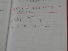 5年生は、算数で「同じものに目をつけて」の学習をしています。文章で書かれた数量関係について、図などを使ってわかりやすく表し直します。それを利用して、式を考え、答えを求めます。