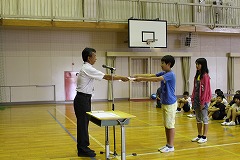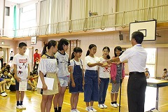 朝礼で、歯の優良児童と陸上競技会の表彰を行いました。