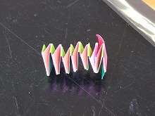 少し厚めの紙を細長く切ります。それを2つ作ったら、その紙を交互に折っていき、バネのようにします。そして、そのバネのような部品を使って自分の好きなものを作るのです。