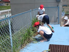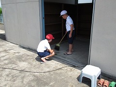 1年間の汚れがたまったプールを、根気よく磨きました。フェンスのところの草もきれいに取りました。更衣室もピカピカになりました。来週のプール開きが楽しみです。