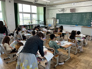3年生は算数で「かけ算のきまり」を学習していました。中学年の仲間入り、落ち着いて学習に取り組んでいました。