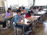 八輪小の子どもたちは、朝登校すると、元気いっぱい運動場で遊びます。その後、教室に戻って読書をします。全員、静かに心を落ち着かせて読書に集中します。教室全体が、落ち着いた雰囲気になり、一日がスタートします。