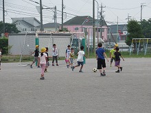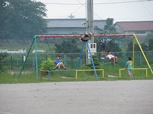 水泳の授業があっても、子どもたちは疲れることなく、とても元気です。休み時間になると、運動場で動き回っています。人気な遊びは、ブランコとサッカーのようです。