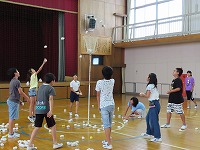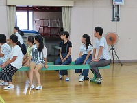 夏休み間近になり、多くの学級がお楽しみ会を開いています。6年生は「八輪ピック」を体育館で行いました。「オリンピック」ならぬ「ハチリンピック」です。「障害物リレー」「ドリブルリレー」「玉入れ」「台風の目」など6種目の中から、自分の参加したい種目にエントリーします。全種目エントリーする強者もいました。特に盛り上がったのは「ぐるぐるバット」です。ふらふらになり、なかなかまっすぐ進めない子もいて、笑いも起こりながら和やかなひと時となりました。1時間、たくさん体を動かし、よい汗をかきました。