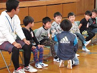 全校での名刺ゲームでは、楽しそうな顔で体育館がいっぱいになりました。