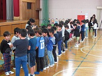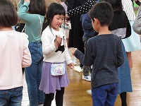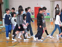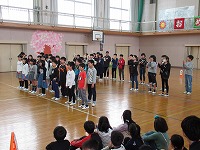 1年生は、3年生に手を引かれ入場、2年生からアサガオの種のプレゼント、5・6年生から「ビリーブ」の歌のプレゼント、4年生に手を引かれ退場というように、全学年とふれ合える会となりました。