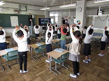 授業の最後には、映像を見ながら姿勢体幹体操を覚えました。毎日、しっかり体を動かして、丈夫で健康な体をつくっていきましょう。