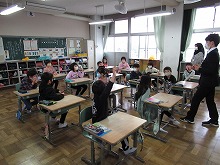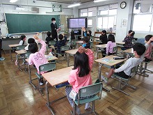 今日は、その1回目です。子どもたちは、英語科の教師の自己紹介を、楽しそうに聞いていました。