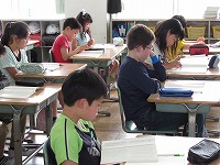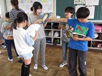 5年生は、音読の練習をグループごとにしています。いすに座って読んでいるグループもありますが、表現の仕方をイメージしながら立って練習しているグループもあります。