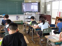 4年生は、大型テレビに映し出されたデジタル教科書を利用して、登場人物の人柄を考えながら物語を読んでいます。