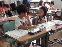 「もりのぷれぜんと」という教材を使って、だれにでも同じようにすることについて考えました。一人一人が一生懸命に考え、隣同士で意見を発表し合いました。友達の意見を参考にして、さらに考えを深めていました。