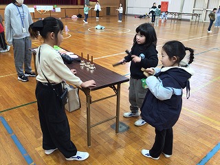 2時間目に3年生が1年生を招待して、遊びの交流会をしました。