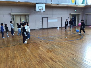 楽器の演奏の仕方をおしえたり、ドッジボールや縄跳びのやり方をおしえたりして、楽しく交流しました。3年生も来年度は高学年の仲間入り。とても上手に1年生と交流できました。