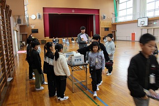 新5年・新6年の児童会を決めるのに、3~5年生が投票をしていきます。