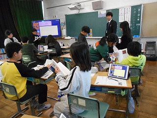 今日は5年生の研究授業でした。国語の題材は、昔から教科書にのっている「大造じいさんとガン」でした。「残雪」と名付けられた雁がハヤブサと戦った後に、大造じいさんが「残雪」を撃たなかった時の気持ちについて考えました。タブレットを有効活用しながら、友達と意見交換したりしながら、大造じいさんと「残雪」の関係について読み取っていきました。