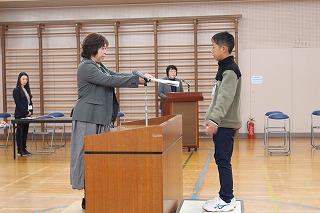 今日は修了式でした。各学年、代表児童に修了証を渡しました。その後、1・3・5年の代表児童が、一年を振り返る発表をしました。とても立派でした。最後に皆で元気に校歌を歌いました。