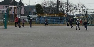 4年生は体育でサッカーをしていました。今日は風もなく、サッカー日和。ミニゴールを使って試合をしていました。体育館は卒業式のセッティングをしてあるので、今はどの学年も運動場で体育を行っています。(今日は6年生は卒業式の総練習でした。一週間後が、卒業式です)