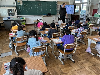 3年生は算数で「かけ算のきまり」を学習していました。中学年の仲間入り、落ち着いて学習に取り組んでいました。