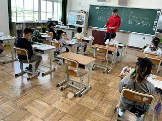 2年生は、繰り上がりの簡単な足し算を暗算で解く授業でした。数え棒でそれぞれが工夫して解こうとしていました。5年生は体育でボールをできるだけ早くコーンの上に乗せるゲームをしていました。チームで話し合って作戦を立てていました。