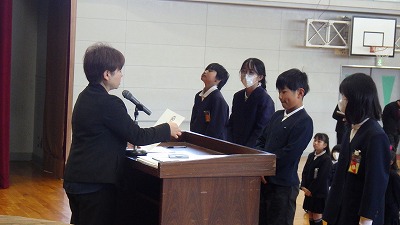 令和7年度の修了式を行いました。各学年代表児童に修了証が手渡され、校長先生より修了の意味と、「安心」「安全」「ありがとう」についての話がありました。その後、かがやき賞の表彰を行いました。最後に、生徒指導の圖師先生より、春休みの過ごし方について話がありました。5年生の聞く姿勢は大変立派で、最上級生としての自覚を感じました。
