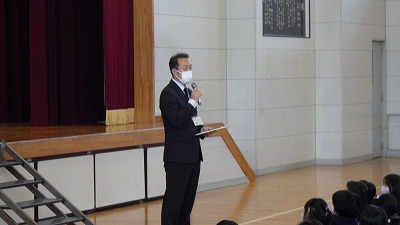 卒業式まで、あと11日になりました。今までお世話になった武藤先生が、6年生を前に特別授業をされました。武藤先生は、本校にみえる前までずっと中学校に勤務されていました。中学校へ向けての3つの心構え、人間関係(悩んだら周りに相談、悩んで悩んで大人になっていく)、自分がしたことが良いことも悪いことも返ってくる(いじめは絶対ダメ)、ちょっとしたことが周囲に大きな影響を及ぼす(軽はずみな言動を慎む)等の話がありました。残り少ない卒業までに日々で、できること(小さな良いこと)を実行しようという思いが芽生えたと思います。
