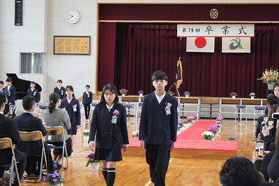 雨が心配されましたが、送り出しのときには晴れ間も見えました。そんな中、第79回卒業式が行われました。