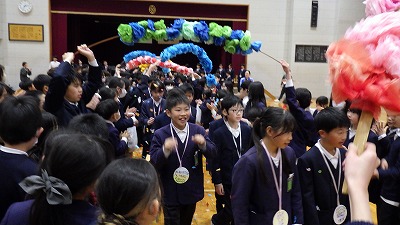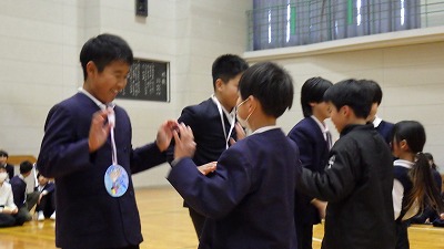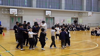 児童会企画「友達100人できるかな」が行われました。6学年ごちゃまぜになって、各クラスで6年生が企画したゲームで楽しみました。最初は緊張している様子もありましたが、ゲームが進むにしたがって笑顔も増え、最後は楽しく終わることができました。これを機に、関係を深めていけるといいですね。