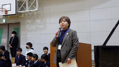 交通指導員の方々、交通安全協会の方々、スクールガードの方々をお招きし、感謝する会を開催しました。児童会長から感謝の言葉を伝えた後、クラス代表の児童から1人1人メッセージを書いたアルバムをプレゼントしました。その後、全校合唱「Let’s search for Tomorrow」を心を込めて歌いました。最後に、班長・副班長の紹介の後、班長代表が班長を代表して、誓いの言葉を述べました。新しい体制になっても、引き続き交通安全に気を付けて登下校をしていきましょう。いつも本当にありがとうございます。