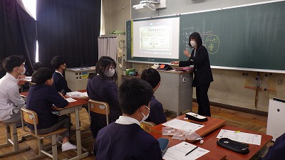 13日(金)2時間目に、佐織中学校の先生方が来校し、6年生に出前授業を行いました。社会科の授業(6の1)と理科の授業(6の2)を行いました。佐織中学校での生活についても、中学校の先生から説明がありました。また、今日は、栄養教諭の新先生から、佐織中学校のランチルームでの給食についての話を、給食の時間に行いました。(詳しくは、今日の給食R7をご覧ください)中学校入学に向けて、心の準備を始めていきたいですね。