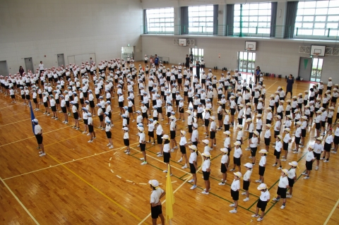 運動会の全校練習in体育館