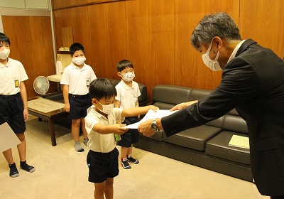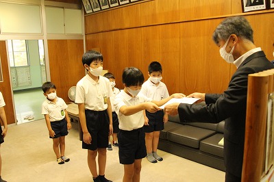 今日は校長室で理科作品展の表彰が行われ、校長先生から賞状が渡されました。入賞されたみなさん、おめでとうございました。