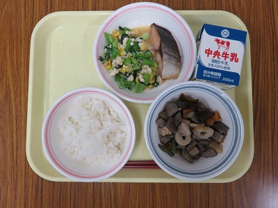ごはん、牛乳、筑前煮、鯵の照り焼き、白和え