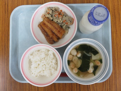 卯の花は給食でも久しぶりの登場でした。中には初めて食べる子もいました。「おから」は、何からできているかと質問すると、まず「おから」って何だろう?という様子でした。4年生に、3年生の時に勉強したよ。と話すと「あっ、大豆だー!」と言って気がついてくれました。おからには、たんぱく質や食物繊維が豊富に含まれています。なかなか食べる機会はないのかもしれませんが、また給食でも取り入れていきたいと思います。