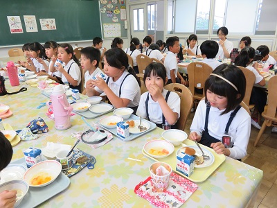 また、今日は4-2のみなさんがランチルームで先生と調理員さんと会食しました。とても和やかな雰囲気で食べることができました。給食も完食でした。