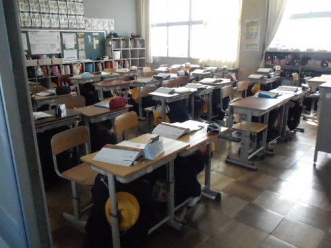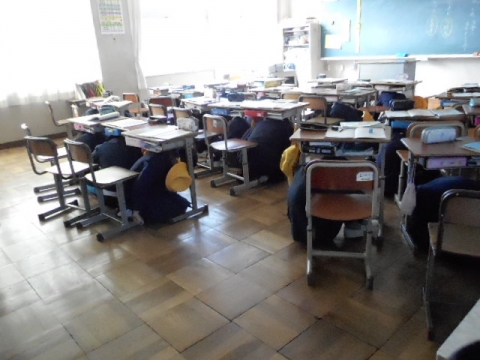 子どもたちは一言もしゃべらず、一斉に机の下に身を隠すことができました。