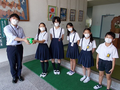 今日は、児童会役員が緑の羽根募金を愛西市役所の担当の方に渡しました。募金に協力いただいたみなさん、ありがとうございました。