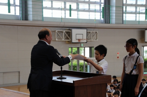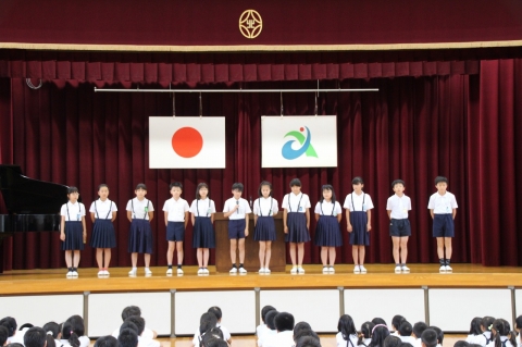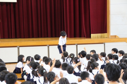 今朝は表彰と児童集会(放送委員会)を行いました。