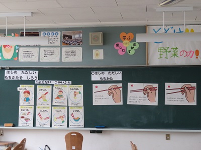 今日は、2-1のみなさんと「はしの正しい持ち方」をランチルームで練習しました。
