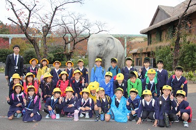 楽しみにしていた社会見学でした。天気が心配でしたが東山動物園に出かけました。1年生と2年生がペアになり仲良く見学することができました。2年生は1年生の歩くペースに合わせたり優しく声をかけたりしていました。