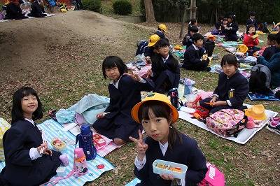 お家の人が作ってくれたお弁当とお菓子をみんなで楽しく食べました。