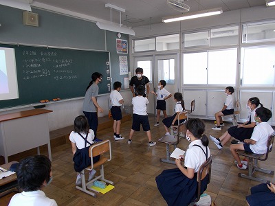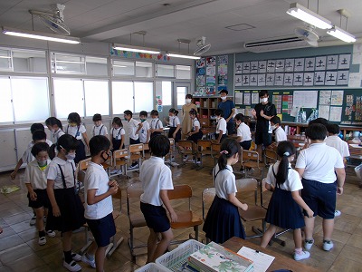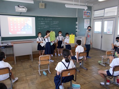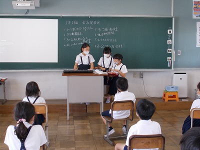 今日は3年生が「会社」と名付けた係活動グループの発表会を行いました。普段行っている活動の紹介やクイズ、ゲーム、出し物などが行われ、招待された先生達も参加して楽しく過ごしました。