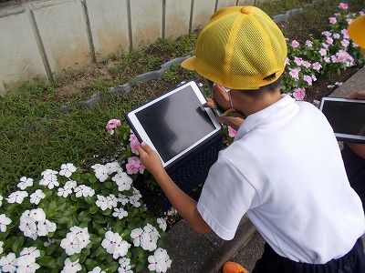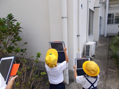 今日は1年生が生活科の授業で、タブレットを使って校庭にいる虫の写真を撮りました。動いている虫を撮るのは難しそうでしたが、みんなでたくさんの虫を見つけることができました。