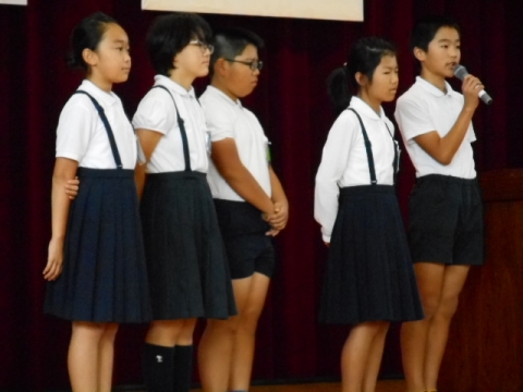 前期児童会役員の挨拶、後期児童会会長の挨拶がありました。