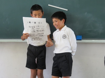 今日は、食育の日でした。係の子が大根のうま煮の「大根」について、説明してくれていました。春の七草でもある大根ですが、5年1組の皆さんは、1年生の時に学習した春の七草を覚えている人がたくさんいて感心しました。