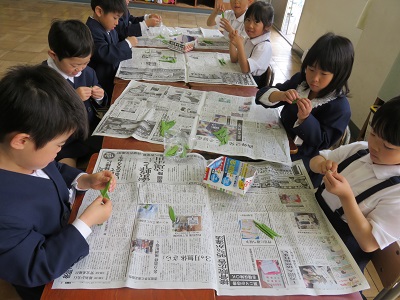 今日の給食の「木の芽和え」に入っているさやえんどうは1年生のみなさんが筋取りのお手伝いをしてくれました!