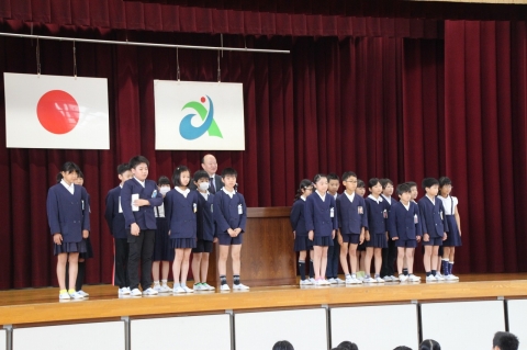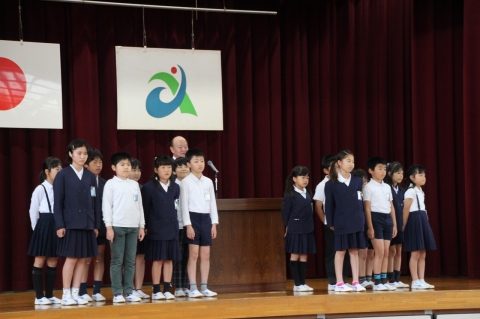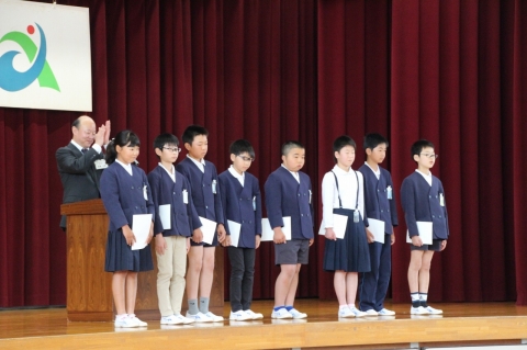 それぞれ、少し緊張気味に校長先生から認証状をいただき、全校のみんなから「よろしくお願いします」の拍手をいただきました。