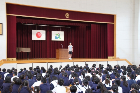 これから学校でも、修学旅行や陸上競技会などたくさんの行事がありますが、その行事を支えてくれている周りの人にも目を向けて、「ありがとう」という感謝の気持ちをもって参加してほしいとお話されました。